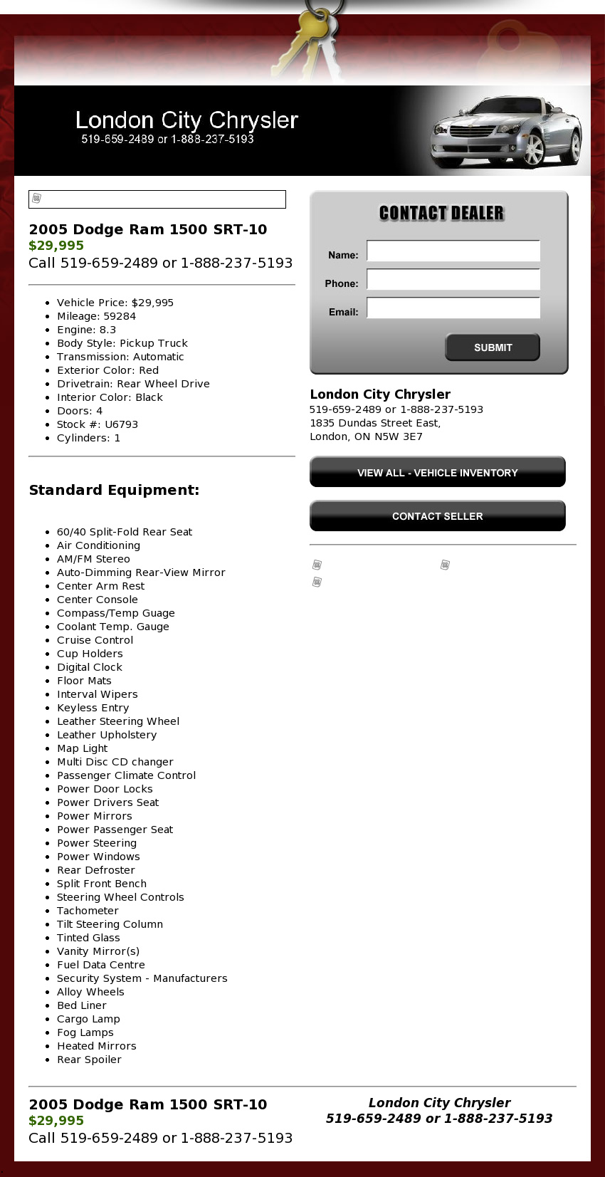 Power Door Locks RAM 1500 Daytime Running Lights Compass/Temp Guage Security System - Manufacturers Leather Steering Wheel Power Windows DODGE Anti-Lock Brakes Leather Steering Wheel 2005osm7htkv13 tn5k hyxqzgfxs29 p4eut7nql8 m9u7bqnwttia http://bestusedcarmarket.com/photos/...6792?c=3515440