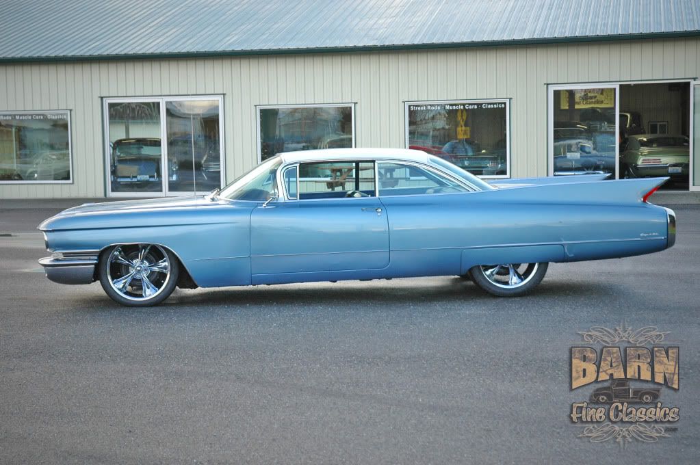 This car is SO COOL! It's also an all original 1960 Coupe De Ville! Powered by a 390 V8 and automatic transmission, with power steering and brakes! Our is lowered on 20 inch wheels! It has a sinister look to it that enhances the outrageous fins and gorgeous curved glass! Inside there's new carpet, working radio, working wipers, exterior blinker indicators, auto dimming brights, power windows, and great black and blue seats! This car was cool in 1960, and it's even cooler now! From $27950 NOW $23950