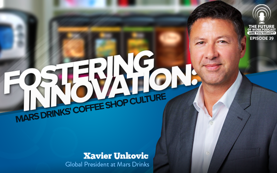 My guest this week on the Future of Work podcast is Xavier Unkovic, Global President at Mars Drinks. Mars Drinks is a segment of the global Mars brand, which focuses specifically on drinks such as coffees, teas and the like. You may wonder why a beverage company is so interested in the future of work, but Mars Drinks is 100% focused on the workplace. Their products and solutions are for the workplace. Internally, Mars Drinks has been doing some very interesting things lately including the design of a brand new office space in Westchester, Pennsylvania. The focus of this podcast with Xavier is how to create a culture of innovation, and we take a closer look at what Mars Drinks is doing including the creation of "coffee shop culture." Xavier also shares his insights on a host of topics such as how the workplace is changing, and management and leadership. We even cover the impact that food and drink might have on how we collaborate and get one's job done. Xavier gives us his perspective on how innovation has changed over the years and shares some of the cool things he is doing at Mars Drinks. Xavier is clearly passionate about his work. Don't miss this really great and interesting conversation with Xavier Unkovic on fostering innovation.