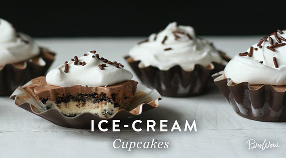 This has been bothering us all summer: If regular cake can be turned into cupcakes, then why can't ice-cream cake be turned into ice-cream cupcakes? We couldn't go another day with this on our mind, so we created these easy-to-assemble ice-cream cupcakes. The treats will last in the freezer for up to two weeks, so make them now and eat them whenever.