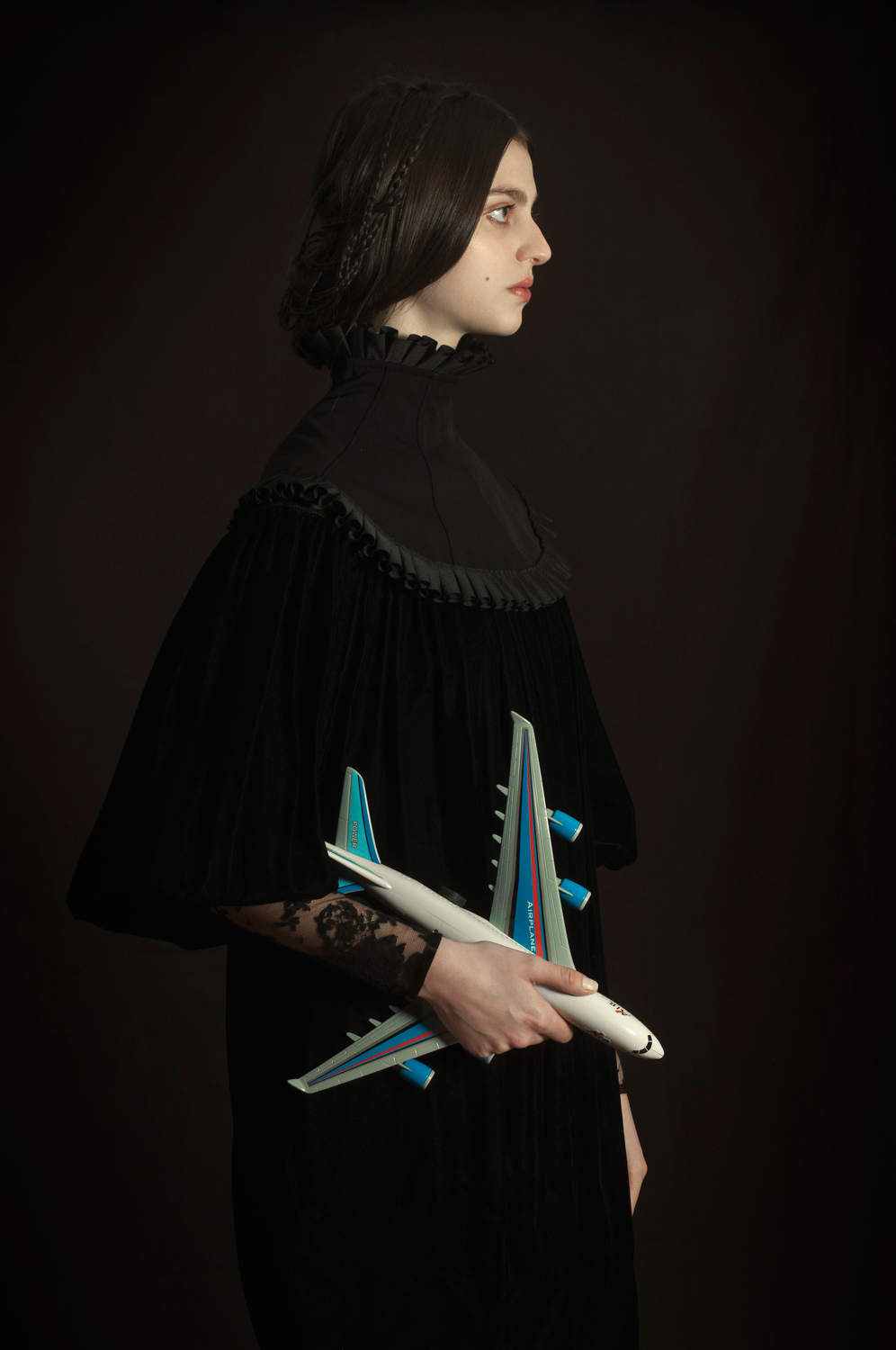 This is part of the series "How would we have been?" by the Argentinean artist, Romina Ressia. The project, making use of the anachronism as a visual resource, does not pretend to refer to the past but to create a reference on which to analyze the evolution of society as well as its actions and reactions front to current issues.