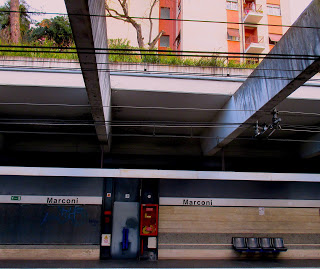 It's a cool Sunday in January and you want to get from Via Marconi, at the edge of the EUR, to the Piazza Tommaso de Cristoforis. You walk down to the Marconi Metro stop of the B line whose last stop Rebibbia is one of Rome's prisons. Laurentina is the last station in the other direction. Unlike most of Rome's Metro system, which is underground, Marconi is outside like the els running through the Bronx and Brooklyn. But as you look up you don't find the counterpart to New York's tenements, but remnants of the Mussolini style fascist housing which is now occupied by its own well-heeled class of inhabitants. Huge trees seem to sprout up out of nowhere; it's a little like Stuyvesant town where once modest dwellings now attract wealthier residents. You stay on the B for eleven stops, Basilica S. Paolo, Garbatella, Piramide, Circo Massimo, Colosseo, Cavour, Termini, Castro Preforio, Policlinico, Bologna and finally Tiburtina F. s (which is one of Rome's train terminals). The names cite familiar tourist attractions, but it's Sunday and the train has its own demographics which includes a priest with a loosened collar champeroning a group of teenaged girls and a young woman attending to her two dogs. At Tiburtina you switch to the 545, five stops in the direction S. Luca Evangelista, through an industrialized section of Rome to the dramatic archway overlooking a housing complex in an otherwise more modest part of town. Rome's subways are clean and punctual, unlike the MTA and even their engineers occupy spacious compartments. But, though cozy, the buses on Sunday can be few and far between and you shiver in the cold as darkness falls and you wait in a shelter craning to look for headlights on the deserted streets. You stare up longingly at the chinks of light coming through shuddered windows with their intimations of a protective warmth that now eludes you.