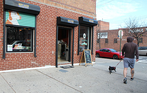 Rocky, for that is his name, is a regular. He's coming to meet his girlfriend, Lola, who's sitting pretty in a sweet sweater on the sofa. Photo by Nancy A. Ruhling Follow the barks to Chateau le Woof on 14th St. at 30th Ave. In puppy love, they romp around and run in circles while everyone coos and oohs at their coy cuteness. Soon, they are joined by a parade of pooches who have come to the chic countertop café for some doggie down time. Chateau le Woof, which Natassa Contini opened in September, is designed to go to the dogs (and the select humans they deign to invite to their five-woof watering hole). Photo by Nancy A. Ruhling Lola all dolled up for Rocky. The canine clientele allows its people to stop in for Parmesan pound cake and macchiato cortados as long as they bring home doggie bags -- pet food and treats. When the café closes, the bowwows have their playtime and parties. Natassa, a longtime dog owner, came up with the idea when she was out walking King, her 13-year-old pitbull rescue. She recently acquired Lola, who is only 4 months old, from someone in the neighborhood who was moving out of the country. Photo by Nancy A. Ruhling Natassa sells pet food and people food. "I had to go a half mile to a mile to get a decent cup of coffee," she says. "It sounds silly, but the idea for the café came to me in a dream. And the name just popped into my mind." Chateau le Woof was a natural for Natassa because she has made her career in the restaurant/nightclub business. She and her fraternal twin, Jenifer, were born in Greenwich Village. Their mother, who is from Brazil, and their father, who hails from Brooklyn, divorced when they were 5. Photo by Nancy A. Ruhling Chateau le Woof specializes in coffee. "My parents had a great friendship," Natassa says. "My dad lived around the corner, so we saw him all the time." At 12, their mother moved them to Honolulu, Hawaii, where the family frequently spent vacations. "We traded the Big Apple for the Pineapple," Natassa says. The remark makes the customers sitting at the counter laugh. (The joke apparently doesn't translate into Doglish for the canines don't utter a single bark.) Photo by Nancy A. Ruhling A wall for art -- and leashes and dog toys. Natassa, petite, perky and perpetually smiling, has one part-time helper, but today, she's working solo. That means nonstop. When she rings up a cappuccino, she gives the customer a sample packet of Natural Balance's rabbit and potato dry-food formula. "This is good if your dog has food allergies," she says. Photo by Nancy A. Ruhling Human customers chatting. Where were we? Oh, yes, when Natassa graduated from high school, she returned to New York City, taking up residence in the East Village. "I had an apartment that wasn't really an apartment," she says. "It was a utility closet that was converted into an apartment. I lived alone and slept on a mattress on the floor." She soon started a career in nightclubs and restaurants, working as a coat check, waitress, bartender and manager. Photo by Nancy A. Ruhling Lola greets a customer. In fact, that's what she had been doing for 17 years when the vision of Chateau le Woof, her French poodle café, came to her. The corner space announces itself with dog portraits painted on its metal gates and traditional French tunes like La Mer and La Vie en Rose that waft out into the street. Natassa's eclectic menu ranges from Brazilian cheese bread and spinach ricotta puffs to homemade chocolate chip cookies. Photo by Nancy A. Ruhling Lola, the cafe mascot, and Natassa. The canine choices include Natural Balance, Orijen, Blue Buffalo and Weruva. Flavors -- poulet et canard, poisson and agneau -- are written in French on the chalkboard behind the café counter. Natassa sees Chateau le Woof, which hosts music and arts events, as a community center for people and pups. "I'd like to open one in Hawaii with my sister," she says. "And maybe one in Brooklyn." Photo by Nancy A. Ruhling Rocky + Lola: Puppy love unleashed at Chateau le Woof. Between now and then, though, she'll fill hundreds of coffee cups and play with scores of dogs. Amid the dogfest, a canine-less customer comes in. "Ain't it good to have a place you can bring your dog to," he says as he stoops to get a sloppy, wet kiss from Lola. Nancy A. Ruhling may be reached at Nruhling@gmail.com; nruhling on Instagram. Copyright 2016 by Nancy A. Ruhling -- This feed and its contents are the property of The Huffington Post, and use is subject to our terms. It may be used for personal consumption, but may not be distributed on a website. ![]() More... |