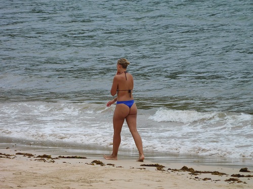 For decades, lured by dreamy pictures of a South Seas paradise, I've always wanted to visit, but this time, on a brief trip south, I've really gone and done, landing at the height of the Zika-microcephaly epidemic. Ah, my impeccable timing. What's more, to get there you go through Recife, Zika's Ground Zero, where airport staff are handing out pamphlets, telling you among other things not to leave stagnant water hanging about: 'If the mosquito isn't born, the disease isn't transmitted.' Funnily enough, though, I'm about the only person wearing long sleeves and one of the few wearing long trousers - as advised by the UN World Health Organisation and the U.S. Centers for Disease Control. The Brazilians, it seems, couldn't give a spider monkey's anus about it. Some dreams lead to disappointment in their realization, but not this one. Fernando de Noronha may not be as dramatically breath-taking as some of the South Pacific islands, but if you spend your time comparing or trying to select a top ten, you lose the beauty and uniqueness at hand. The most spectacular feature is a huge grey monolith, called Morro do Pico, poking over 1,000 feet up into the sky from its lushly verdant vegetation. From the land side it looks like an enormous phallus sticking rampant out of green pubes, lording it over everything far and wide. The phallus But from the sea it looks like nothing so much as General de Gaulle in his haughtiest pose, a huge rocky outcrop providing the enormous nose, and a large slit the arrogant eye. De Gaulle Despite, or because of its phallic and Gallic connotations, Fernando de Noronha has been declared a UN World Heritage Site for its environmental significance. Seeing that a main attraction is a boat trip along the coast, I'm ensconced on Happy Days, a small craft which is playing host to about two dozen Brazilians armed with snorkeling gear and selfie sticks. I can now say with absolute and definite certainty that Pico is indeed de Gaulle's fossilized head and nose. The coast The sea is beginning to play up, rocking and rolling here, boogeying there, and a lot of the Brazilians are looking like they don't want to play at all. Am I glad I took Dramamine. We return to port to deposit the vomitters, who have already deposited their all over the side of the boat. When we set sail again, we're just seven. The views of countless lush coves, hilly ridges, outcroppings, monoliths, and conical rocks - a pair of them called the Two Brothers - are delightful, as is the roaring echo produced by a hollow cliff when the towering surf crashes into it. Two Brothers We moor in Sancho Bay, reputedly the most beautiful beach in Brazil - a fairly small crescent of deep golden sand backed by a green curtain of vegetation and vertical yellow-brown cliffs. Again it's the same problem with 'best,' 'most' and 'top tens.' You try to rate and you spoil the pleasure. It's compulsory to wear life preservers here, and the snorkelers look pretty weird with multicoloured foam float tubes emerging from under their chests by each armpit. The weather is changing from bright sun to black clouds and squalls and back again every half hour or so. The haughty de Gaulle really looks sour under dark clouds. To visit Sancho Beach from the land you have to descend 230-foot perpendicular cliffs by means of two equally perpendicular metal ladders and a steep deeply stepped path. Just the time for one of my vertigo attacks. Sancho Beach Getting there Once on the glorious golden beach, which a plaque proclaims not just the most beautiful in Brazil but on entire Mother Earth, it's time for even more vertigo, this time at the sight the most architecturally sculpted female bums - and some not so - covered in nothing but the skimpiest string of a string bikini, with the patch way above the crack up which the string has disappeared. Beach Bums Now a dude has just blown a huge glob of snot out of his nose onto the most beautiful beach in the world - doubtless now the most beautiful snot in the world - perilously close to which a stringed female bum, not the most beautiful in the world, is now approaching. OK, let's forget the snot, and let's forget pointless ratings. But if you want to be on a picture prefect beach with deep golden sand, a turquoise sea, a luxuriant eruption of green against a background of vertical yellow-brown cliff ramparts, with snowy white gulls crowning emerald trees, come here. Ah yes, the beach There's a warning sign, though: the sea is 'agitated.' Perhaps it's because of the stringed female bums. The sea gone done agitated As if that's not enough, on Lion Beach on the other side of the island, an over-enthusiastic suitor picks up his prone love in his arms. She's changed from her string to a dress, but she's forgotten to put on undies. The wind blows, the skirt balloons out and, lo and behold, there's not even a string disappearing up the crack. He now repeats the whole shtick. Talk about Gone with the Wind. Lion Beach view Sueste Beach view Nearby a teju-açu, a large mottled black and white monitor-like lizard flicks out its purple tongue. Lizard's eye view Another spectacular site is Cacimba do Padre Beach with its Hawaii-like tubular waves, where the world surfing championships took place some years back against the background of the Two Brothers rocks. Here as elsewhere, the pandemic of selfies or 'look-how-imbecilic-I-can-look' poses is suffocating - but more on that in a later blog. And now back to Zika: the authorities are nuking Conception Beach right beneath the Pico, trying to produce another eponymous immaculate event - and all in the name of fighting Zika. What's actually happening is this: they're releasing experimentally swarms of male mosquitoes sterilized with gama rays by the nuclear institute. As females only mate once in their lifetime it's hoped the sterile newcomers will lead to the females producing stillborn larvae, thus reducing the population of the nasty little buggers. Conception Be