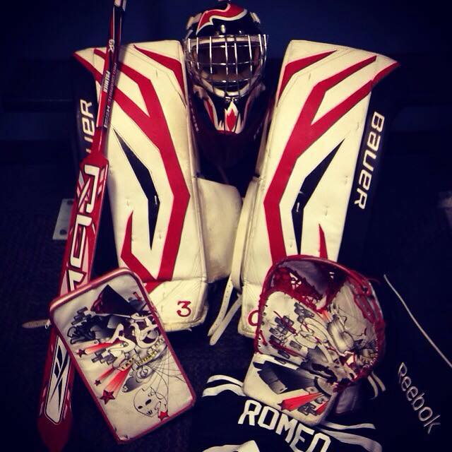 Dressing from left to right, I slide into my equipment, pulling the straps of my leg pads tight, taking the time to leave enough room to allow for better rebound control. I pull on my chest protector, strapping it against me, around me. I tug my jersey over my head, fitting my arms through the sleeves and adjusting the way it lays over my gear. As I walk from the arena locker room to the rink, I stop on the way. I kiss my husband, and skate onto the rink surface. It's game time. As a kid growing up in the Catskills, I loved hockey. I lived for the times when Pete Naples, our high school gym teacher, would choose floor hockey as our sport. I would tell my teachers I'd need to be excused for a viola lesson, and would show up in a random gym class, running immediately to the net. I bought a stick, and kept it at school for the express purpose of harnessing my craft. Either my teachers never caught on, or more likely, they were doing what teachers tend to do, supporting a student's passion. Fifteen years later, no one was surprised I married a teacher. When I started at college, I had realized that I was gay, and was starting to plant furtive steps into the world of my own skin. And that skin very much included hockey as a way that I identified. I was gay, yes, absolutely and unequivocally. But it was also with that same assuredness that I saw myself as a goalie. It's who I was, not a choice but a hard-wired, reality-based, dream-fulfilling, butterfly-inducing aspect of my very being. I can recall my first kiss with as much vividness as I recall my best glove save, a two-pad stack, sliding across the crease and wind-milling my glove into the top corner of the net to deny the glory to a shooter who was sure he had scored. It was at Seton Hall, a private Catholic University, that I learned who I was, and the man I discovered could be neither Catholic, nor private. I was pulling my gear back to my dorm room when I found that my door and surrounding walls had been vandalized with anti-gay graffiti. In red permanent marker, someone had written faggot, and queer and homo. And so there I stood for awhile, my goalie stick leaning against the door frame, allowing the rouged epithets to scream past my eyes, rip through my chest, and fill the cavern of insecurity inside my 17-year-old body. And I waited to see if anything took hold, if in some way the iron could brand. And it's the same boy from Pete Naples' gym class who opened the door then, pulled his goalie gear into his bedroom, and cried. In 2002, when marriage equality was a term still yet-to-be, the world felt different. Coming out was still a big deal. You could count on one hand the number of openly gay celebrities, and on no hands the number of openly gay athletes playing sports. I didn't have an athlete to emulate who had navigated this world. It was up to me to figure myself out. After a pair of tumultuous years at Seton Hall, where I sued them for the right to assemble a gay-straight alliance, I needed to leave. I was feeling really low about myself, about the world and the ways it treated boys like me. The only escape for me was when I was in my gear, stopping pucks. I could push away all the noise, all the distractions, and focus on stopping a tiny rubber puck, flying through the air at 80 miles per hour. Life, stripped down to a piece of vulcanized rubber and the will to stop it. Hockey became my air. When I was going to the arena to watch my New Jersey Devils play, I was just another one of the 17,000 faces in the crowd, no different. No better, and certainly no worse. I'd watch Martin Brodeur play, his cool and collected approach to goaltending infusing his team with a calmness I had never known in my own game. I worked on that, inside. I worked on allowing a stillness to fill me before games, to allow myself to only be in control of the things I could control. That approach started to become more effective in my personal life, and not just in my sports career. If I could be in control of myself, then in the act of knowing myself, I could be all I needed. If I allowed myself to only manage my own life, my own reality, then I could get to a place where I was enough, and could virtually shut out any negativity directed towards me as easily as I could direct a rebound into the corner boards. And that's how I found my legs, connected, rooted, planted and firm. Hockey players have fun with labels, whether you're a sniper, an enforcer, a stay-at-home defenseman, an agitator, or a plug. But it's goaltenders who have the opportunity to take things a step further, to showcase their own personality through their equipment, from the NHL right on down. Every goalie has his gear guy, the dude who takes care of his equipment, and makes sure he's in a setup that not only keeps him safe, but looks sharp. My guy is Mike Urbano, and he's the manager of GoalieMonkey, a division of MonkeySports, that truly is the end-all for goalies who are looking to get new gear, whether it's pre-made or custom designed. I can't even describe to you, but the world of goalie gear is huge, with tens of thousands of people flocking to Facebook groups to ogle at each other's setups. It's an interesting world where men can pay compliments to another man on what he's wearing, and it's not weird. Almost seems like the way it ought to be, huh? We get to represent ourselves with our equipment, but most especially with our masks. Goalie masks are a thing of absolutely beauty. For years, I had played in a helmet that was an exact replica of Martin Brodeur's helmet, the sincerest form of flattery. I felt such a connection to my sports icon, and to pull on the same bucket made me remember to mimic his approach. But once I found myself in a more confident place, it was time for me to design a helmet of my own. I worked with Tony Jarrett of Masked Expressions for my first helmet, as well as for my most recent. My first helmet had nods to Martin Brodeur, my hometown, and a custom log